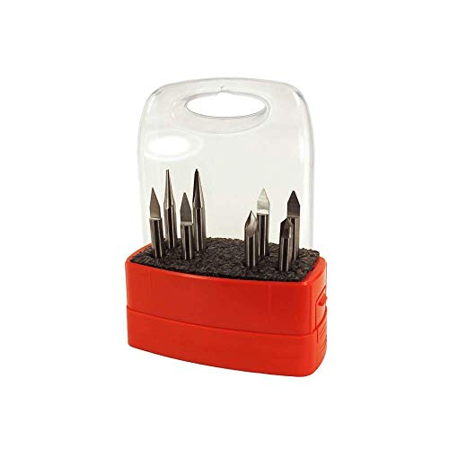 - Kit includes: 15° Engraving Bit with 1/16" flat, 15° Engraving Bit with 45° point, 30° Pencil Point Engraving Bit, 30° Engraving Bit with 1/32" flat, 45° Pencil Point Engraving Bit, 45° Engraving Bit with 1/32" flat, 60° Vee Groove Bit, 90° Vee Groove Bit